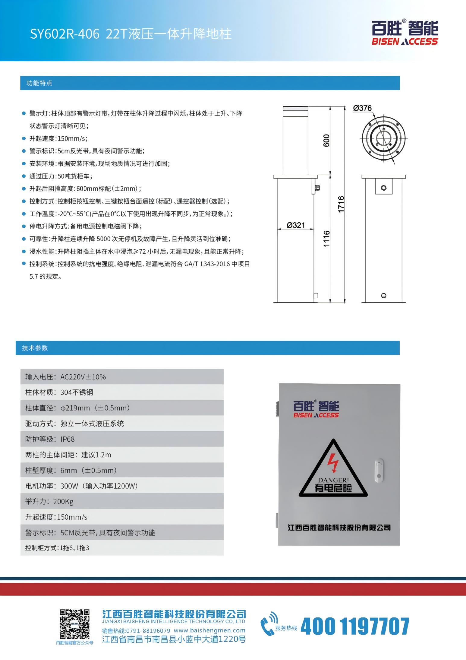 警示燈:柱體頂部有警示燈帶,燈帶在柱體升降過程中閃爍,柱體處于上升、下降狀態(tài)警示燈清晰可見;
